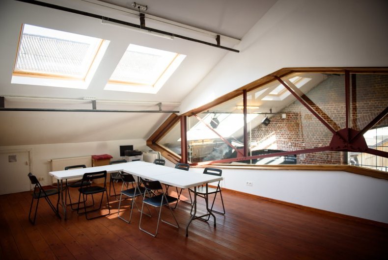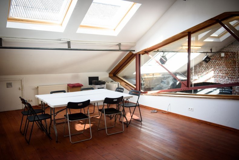 Cet espace polyvalent est idéal pour un workshop, une réunion ou une projection. Il peut faire office de loge privée (avec douche) ou d’espace "interviews". Il est doté d’une vitre acoustique et ne se loue pas indépendamment du Foyer.