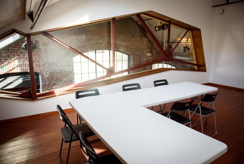 La Mezzanine se situe à l’étage de la Tricoterie et donne vue sur le Foyer.