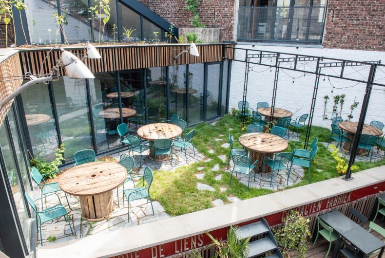 La terrasse est l’espace extérieur situé au cœur de la Tricoterie.